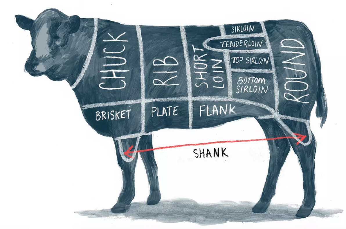 Beef is divided into large sections called primal cuts, which you can see in our beef cuts chart. These primal beef cuts, or "primals," are then broken down further into subprimals, or "food-service cuts." These are then sliced and chopped into individual steaks, roasts, and other retail cuts.